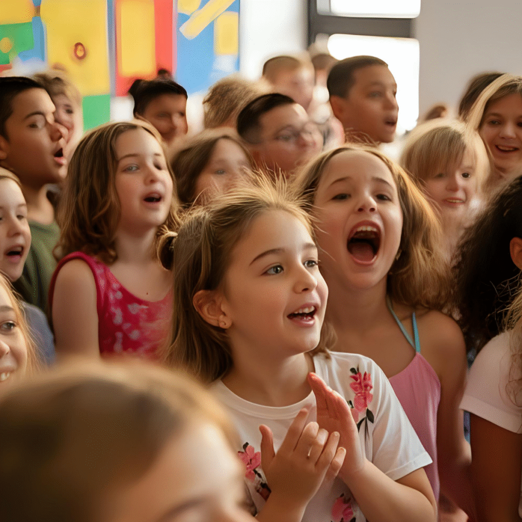 Um den Schulsong noch individueller mit eurer Schule zu verknüpfen, sollte er natürlich auch von euren Schülerinnen und Schülern gesungen werden. Wir bieten an, dass wir dafür zu euch kommen und mit den Kindern bestimmte Teile des Songs aufnehmen. Im finalen Mix werden die Kinderstimmen dann zusätzlich hinzugemischt, so dass der Eindruck eines großen Schulchores entsteht. Dafür singen wir in der Regel den Refrain und Oh-oh-oh-Teile. Die Strophen bleiben wegen der nötigen Textverständnis im fertigen Mix bei uns.